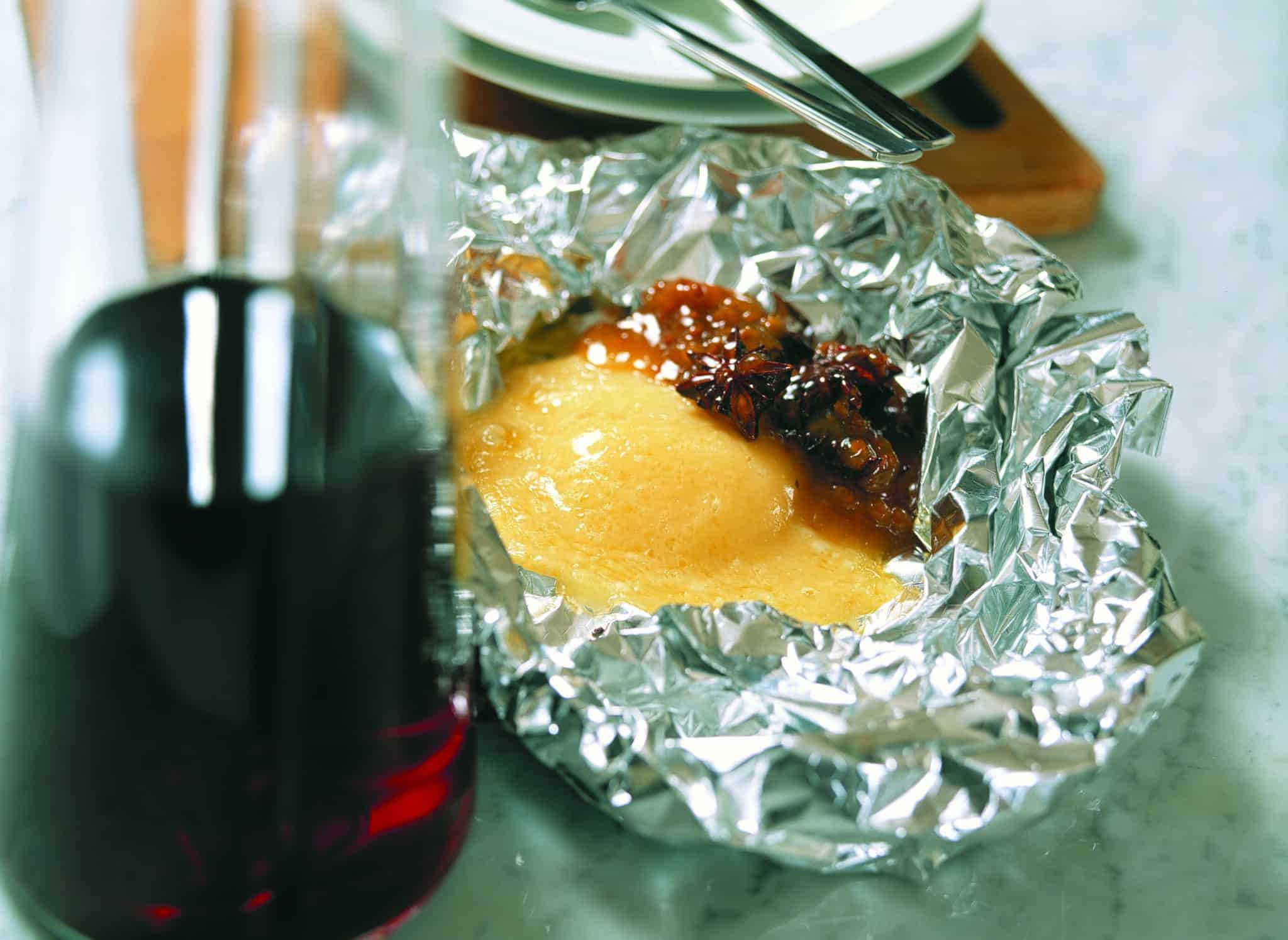 Koka upp hjortron, stjärnanis, vinäger och socker.