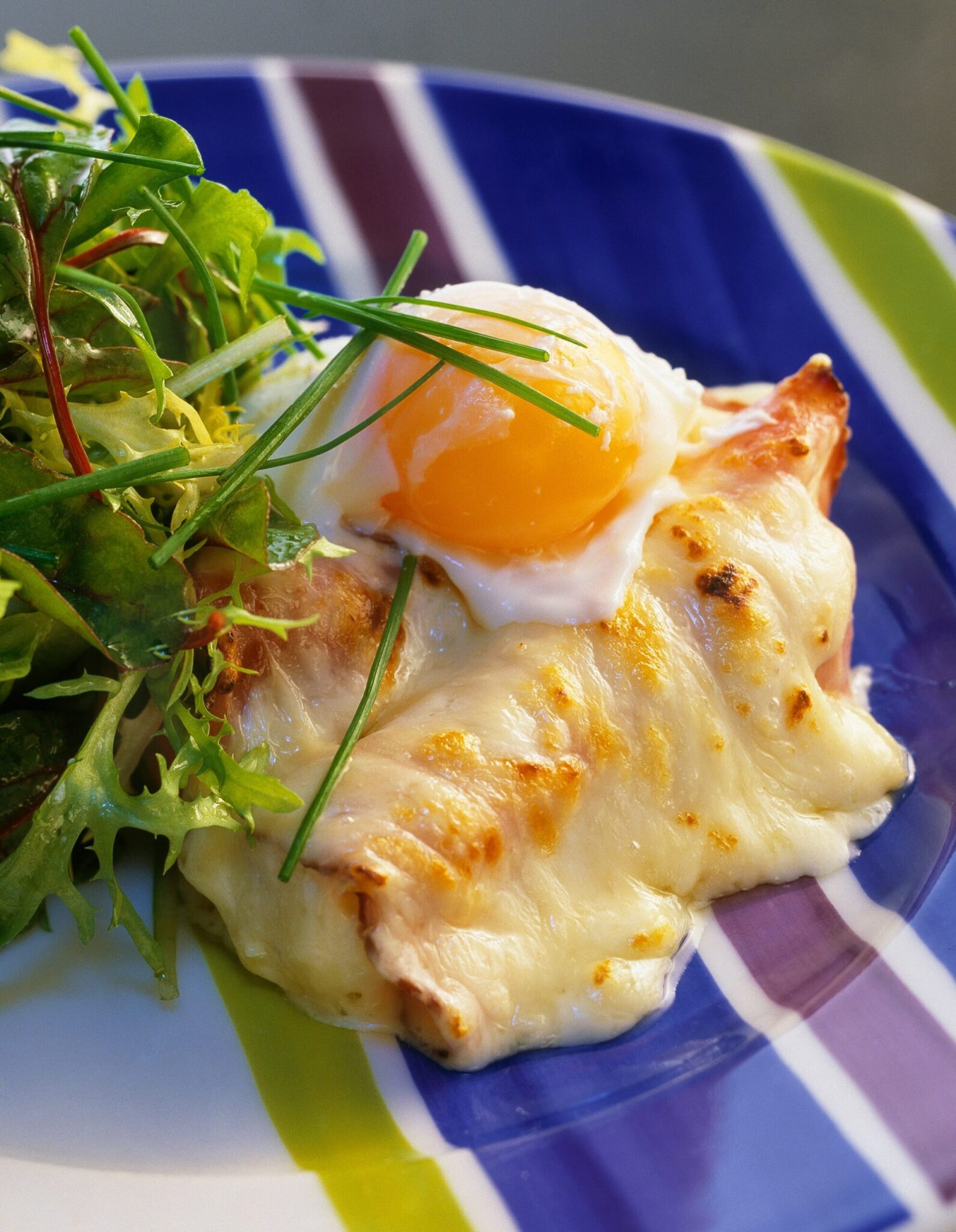 Servera med pocherade ägg och fräsch sallad med mild vinaigrette.