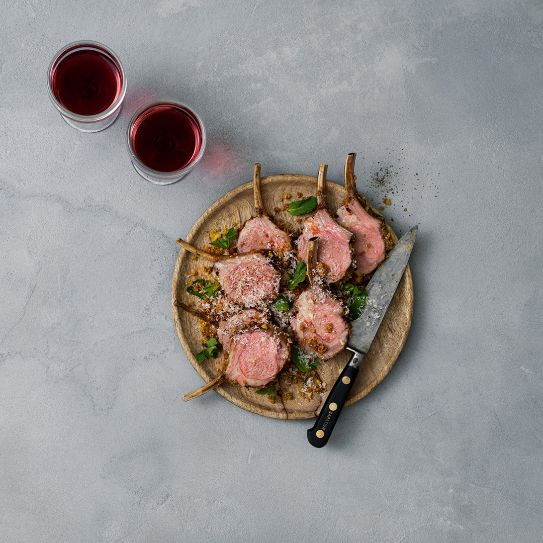 Förhöj lammracksen med pistagenötter och Västerbottensost®. Servera gärna tillsammans med gratinerad purjolök och sparris.