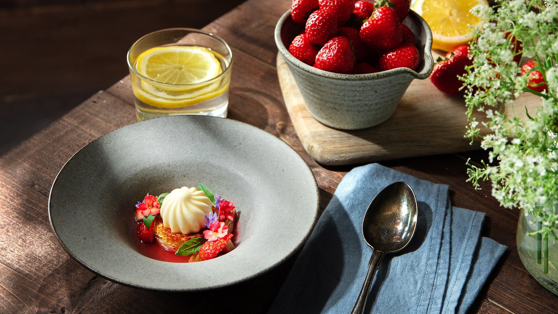 En efterrätt med mandelkaka, rabarber och jordgubb som passar perfekt till midsommar. En härlig kombination av sött & surt gör att denna kommer bli en succé!