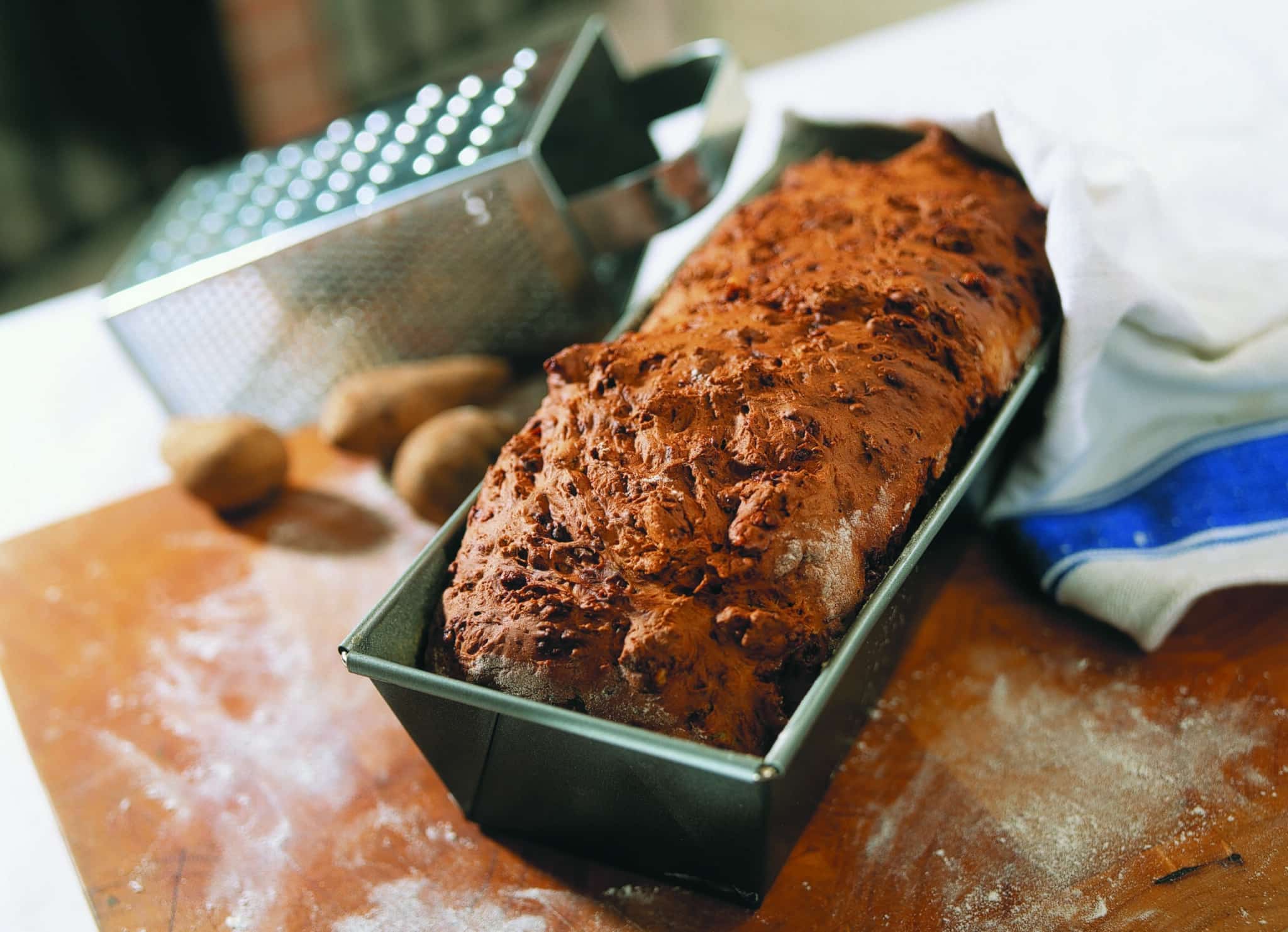 Sätt ugnen på 150°. Mosa mandelpotatisen. Blanda filen med bikarbonat, salt, kummin och mandelpotatis. (Hittar du inte mandelpotatis kan du använda vanlig). Tillsätt honung, ost och mjöl. Arbeta degen tills den blir smidig. Smöra och mjöla en form och klicka ner smeten i formen och ställ i ugnen ca 50-60 minuter. Låt svalna under en handduk.