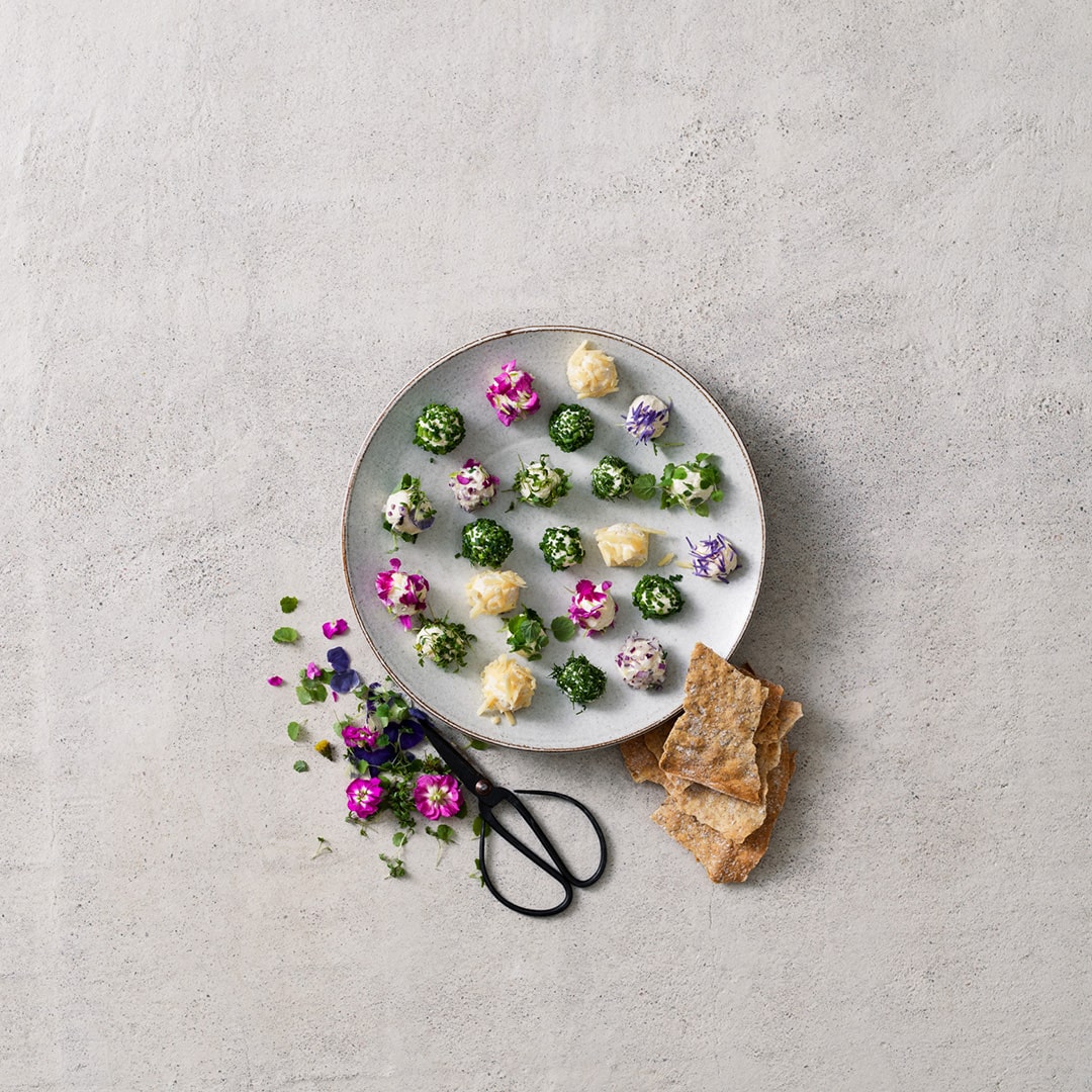 Rulla bollarna i valfria hackade örter, ätbara sommarblommor eller riven Västerbottensost.®