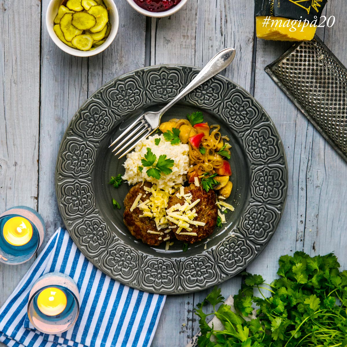 Blanda ner färsen och forma till biffar.