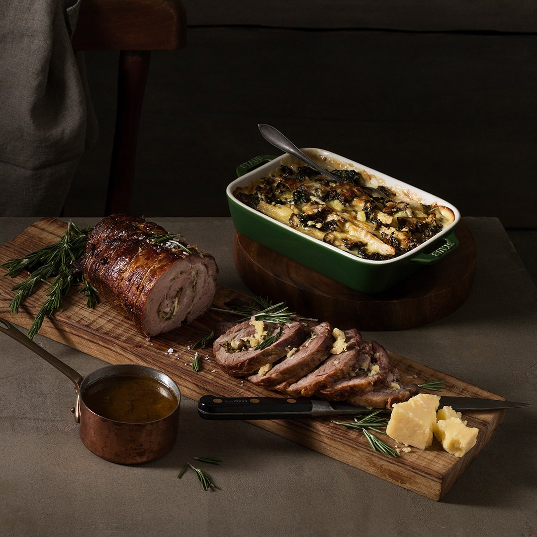 Underbar porchetta fylld med örter, salami och Västerbottensost®. Häll på Marsalasky över innan servering!