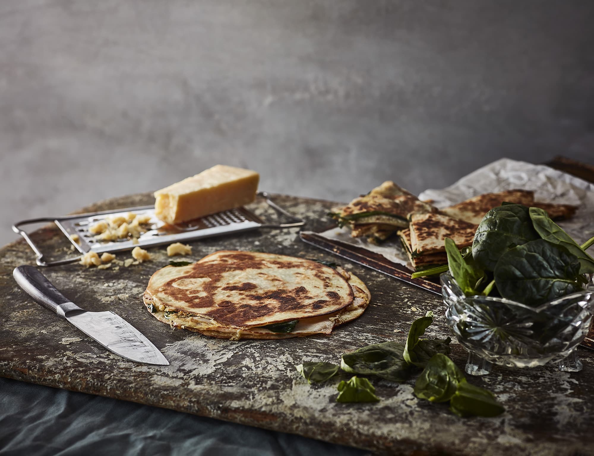 Quesadillas med kyckling, bladspenat & Västerbottensost®
