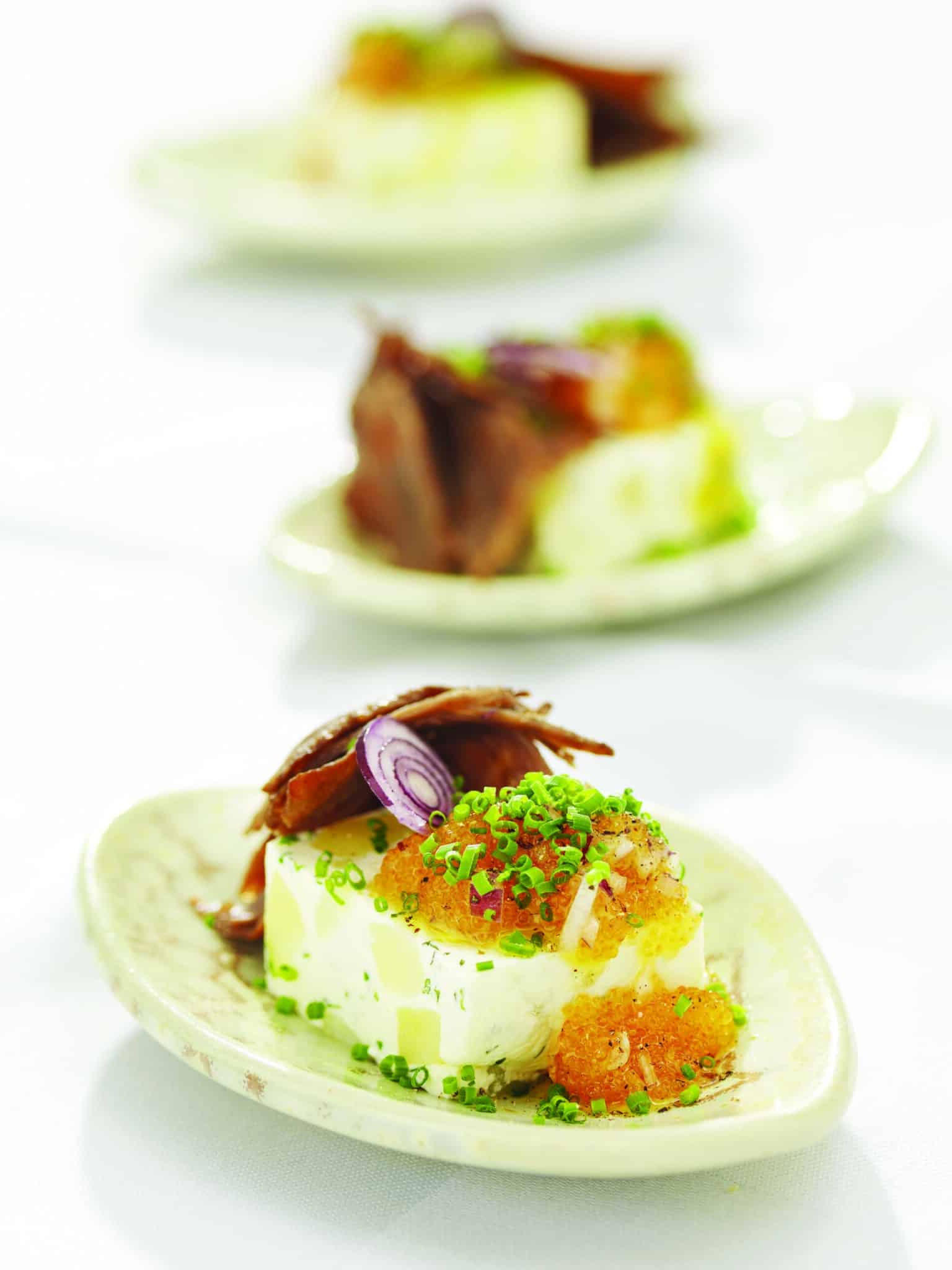 Blanda löjrom med citronsaft och rapsolja, smaksätt med salt och vitpeppar