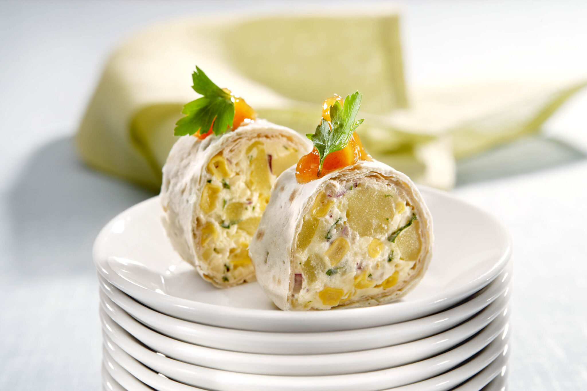 Fördela fyllningen i tunnbröden, rulla ihop dem. Vira in dem i aluminiumfolie och vrid till i ändarna som på en smällkaramell. Låt vila i kylen en timme.