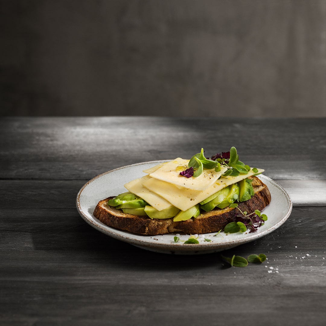 Hapanjuurivoileipä viipaloidulla Västerbotten-juustolla® ja avokadolla