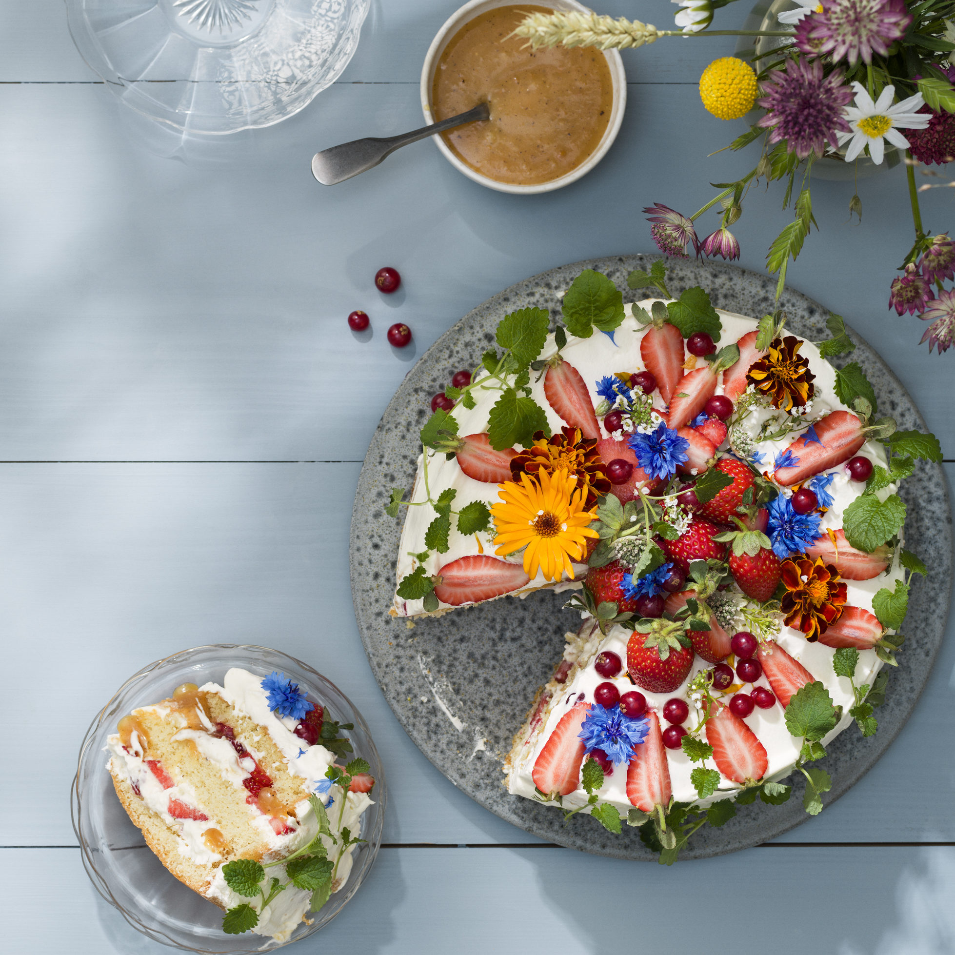 Mikä on kesä ilman kesäkakkua mansikoilla? Tässä on resepti Västerbottensostilla ja sileällä karamellikastikkeella!