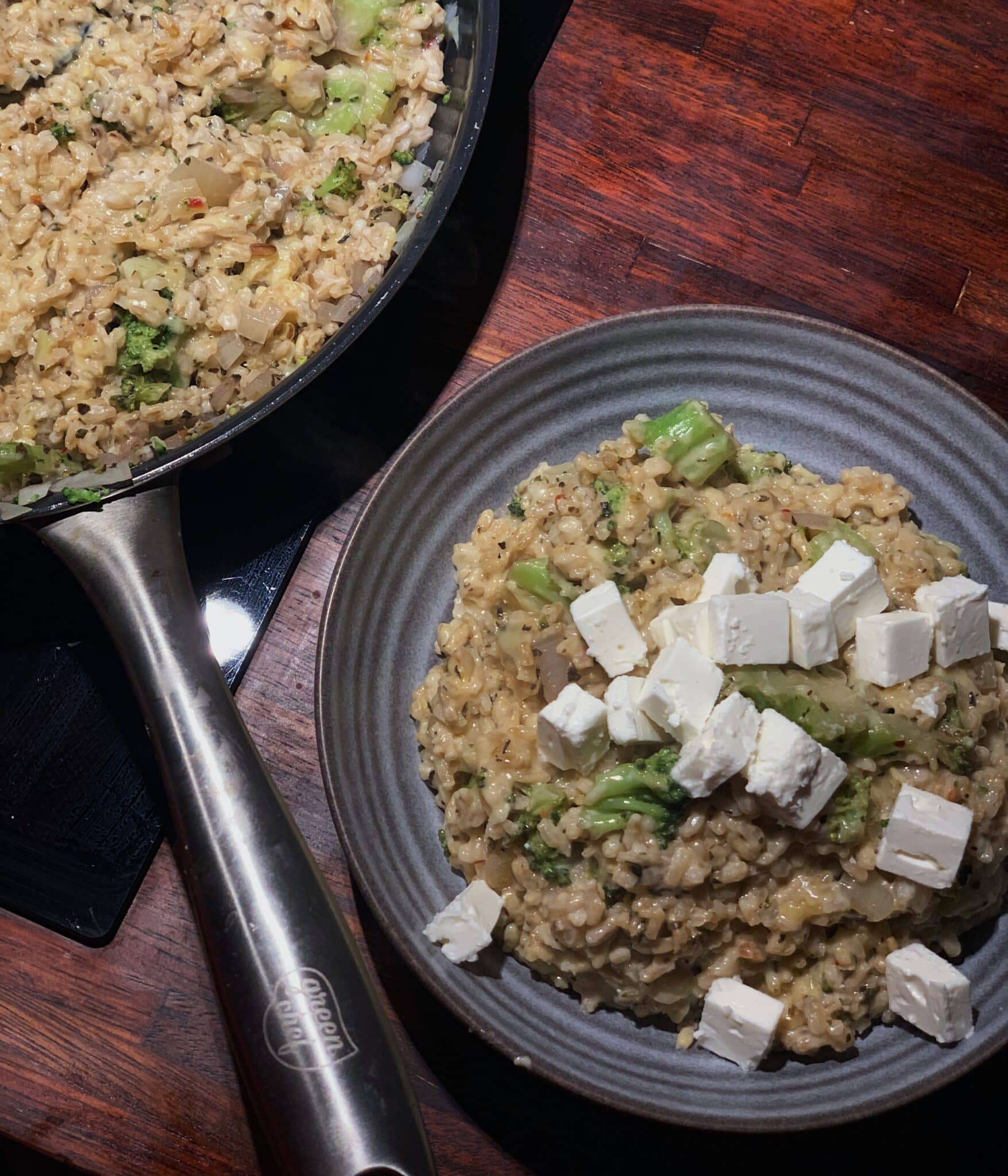4. När riset kokat klart blanda ner det i stekpannan, krydda med citroncest, salt och peppar efter smak.