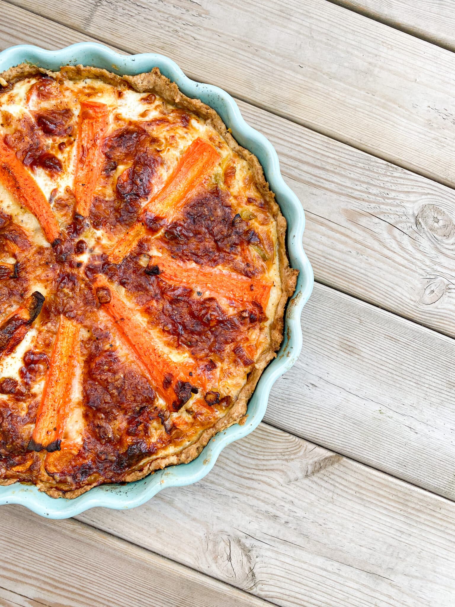 En vegetarisk paj med morot, purjo, fetaost, men även en näve Västerbottensost.
