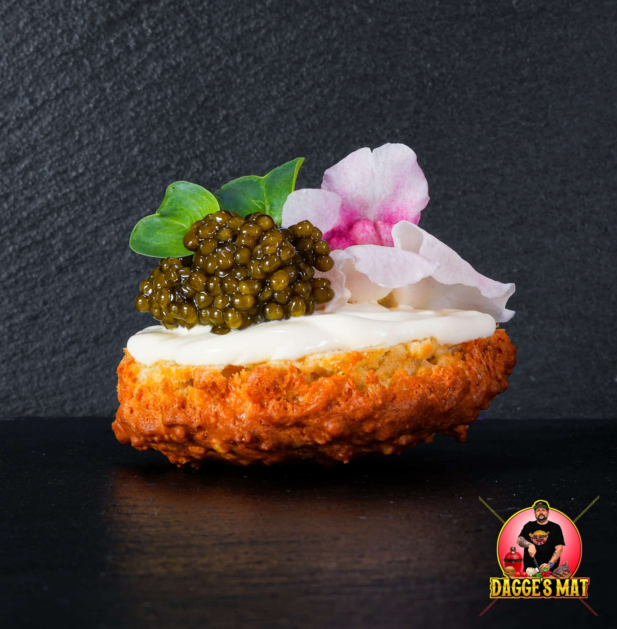 Västerbottenmuffin med smetana och störrom. Toppa med lite fina ätbara blommor