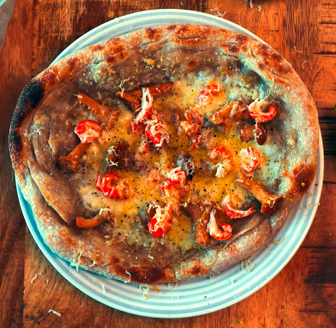 Landskapspizza Vit pizza med kräftor och kantareller